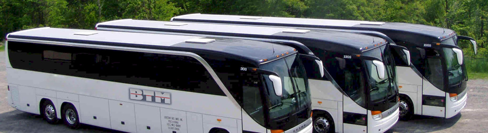 From a four passenger sedan to a 57 passenger deluxe coach, BTM Charters keeps the travelers experience in mind. Their buses offer Panoramic Views, Extra Comfort, On Board Facilities, Large Capacity Luggage Storage, Cold Air Conditioning, Plush Reclining Seats with Foot Rests, Extra Smooth Ride with state of the art Independent Suspension and more.